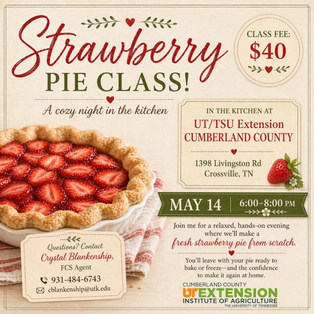 Join us for our Strawberry Pie Class at the Country Store! In this hands-on workshop, you’ll learn how to create a delicious strawberry pie from start to finish, including tips for preparing the filling, working with crust, and achieving that perfect set. Whether you’re brand new to baking or just want to brush up on your skills, this class is a fun and approachable way to build confidence in the kitchen. Participants will leave with their own pie to take home and freeze or bake and the know-how to recreate it at home. The cost is $40 per person, and space is limited to ensure a quality learning experience.