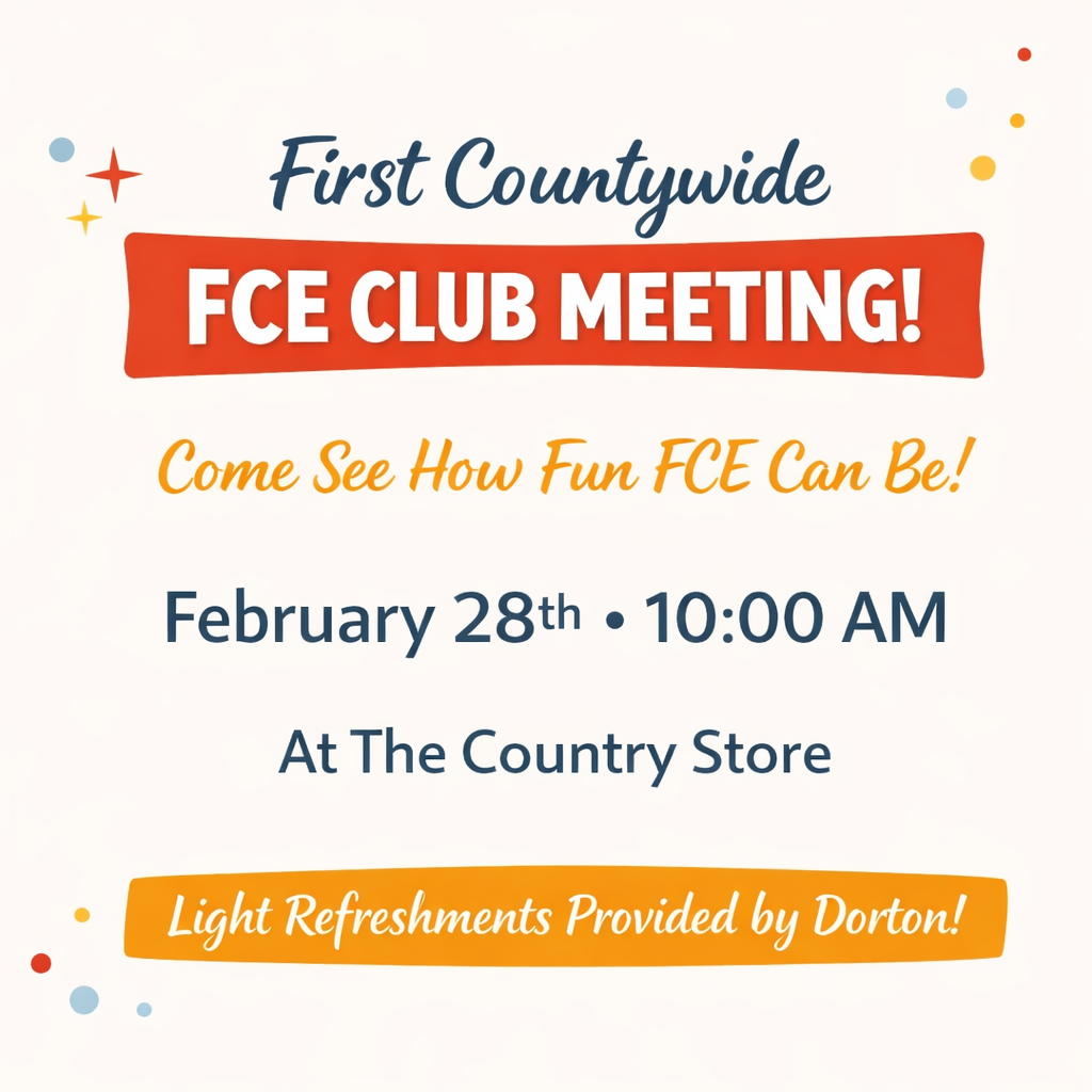 - Dorton FCE – Meet 3rd Thursday of month, 5:30 pm, Country Store/Community Complex.